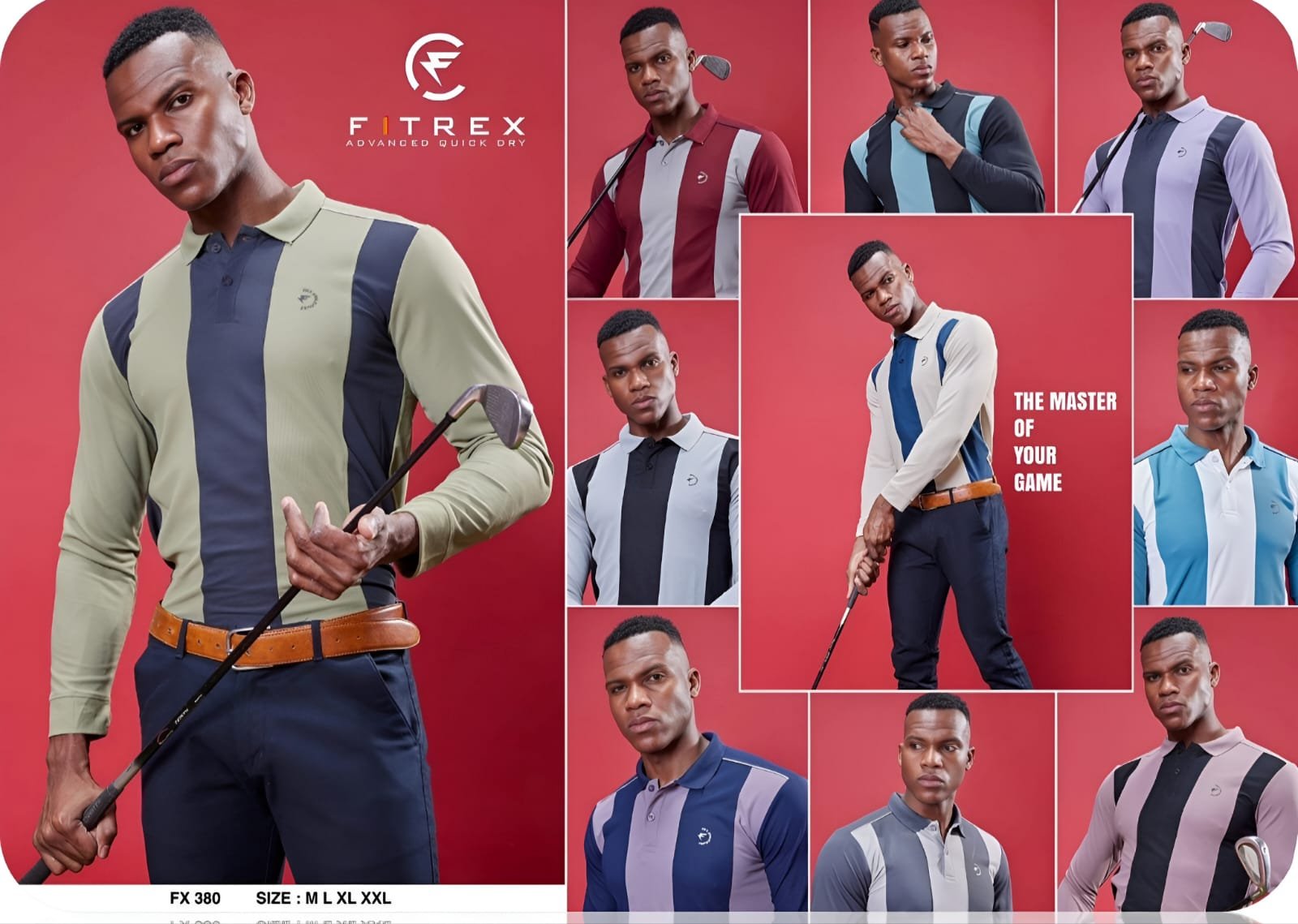 The FITREX FX 380 is a premium long-sleeved polo shirt designed for high-performance activewear and athletic-inspired casual looks. It is part of the brand’s “Advanced Quick Dry” collection, which prioritizes moisture management and comfort during physical activities like golf or training.